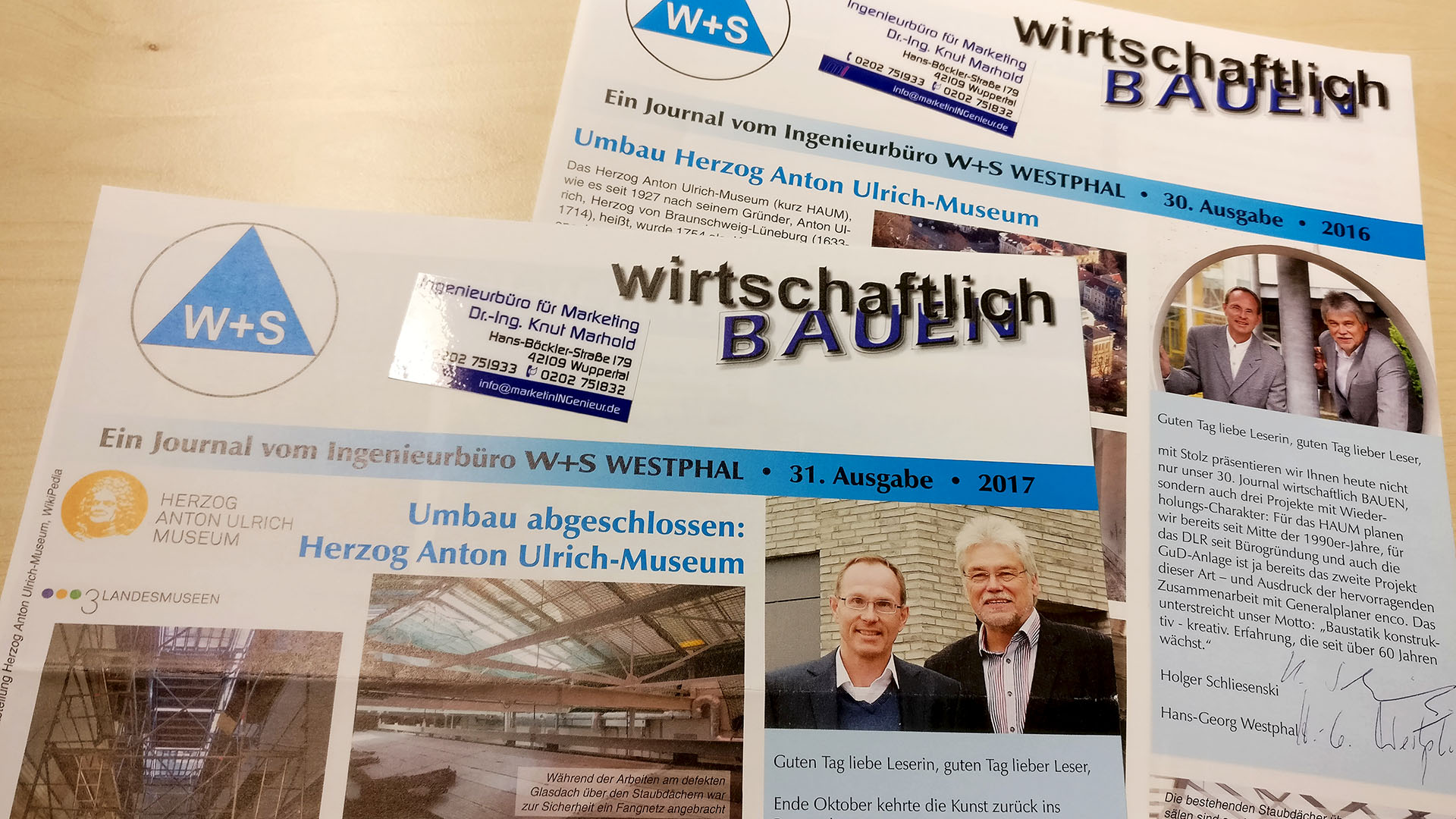"Unsere Kundenzeitung, die von Dr. Marhold 1997 konzipiert wurde und seitdem regelmäßig von ihm erstellt wird, ist ein sehr wichtiges Darstellungsmittel und verringert unseren persönlichen Akquise-Aufwand. Sie beugt Auftragslücken vor. Seit wir die Kundenzeitung herausgeben, hatten wir nur ein Mal ein kleineres Auftragsloch - nachdem wir einen Großauftrag abgewickelt hatten, der die gesamte Mannschaft extrem gefordert hatte!"